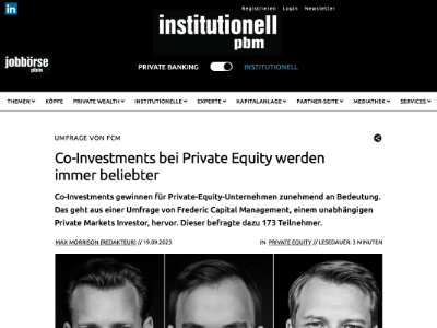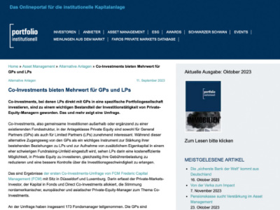 Neben den Aktivitäten im Bereich Fondsinvestitionen führt FCM gezielte Private Equity Co-Investments in Zusammenarbeit mit etablierten Fondsmanagern durch. Diese Co-Investments sind ein wesentlicher Bestandteil moderner Private Markets-Portfolios: